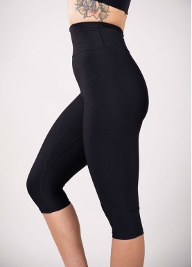 Leggings sin costura al frente, de talle a la cintura acabado con pretina ancha para mayor soporte en abdomen largo capri a la rodilla.